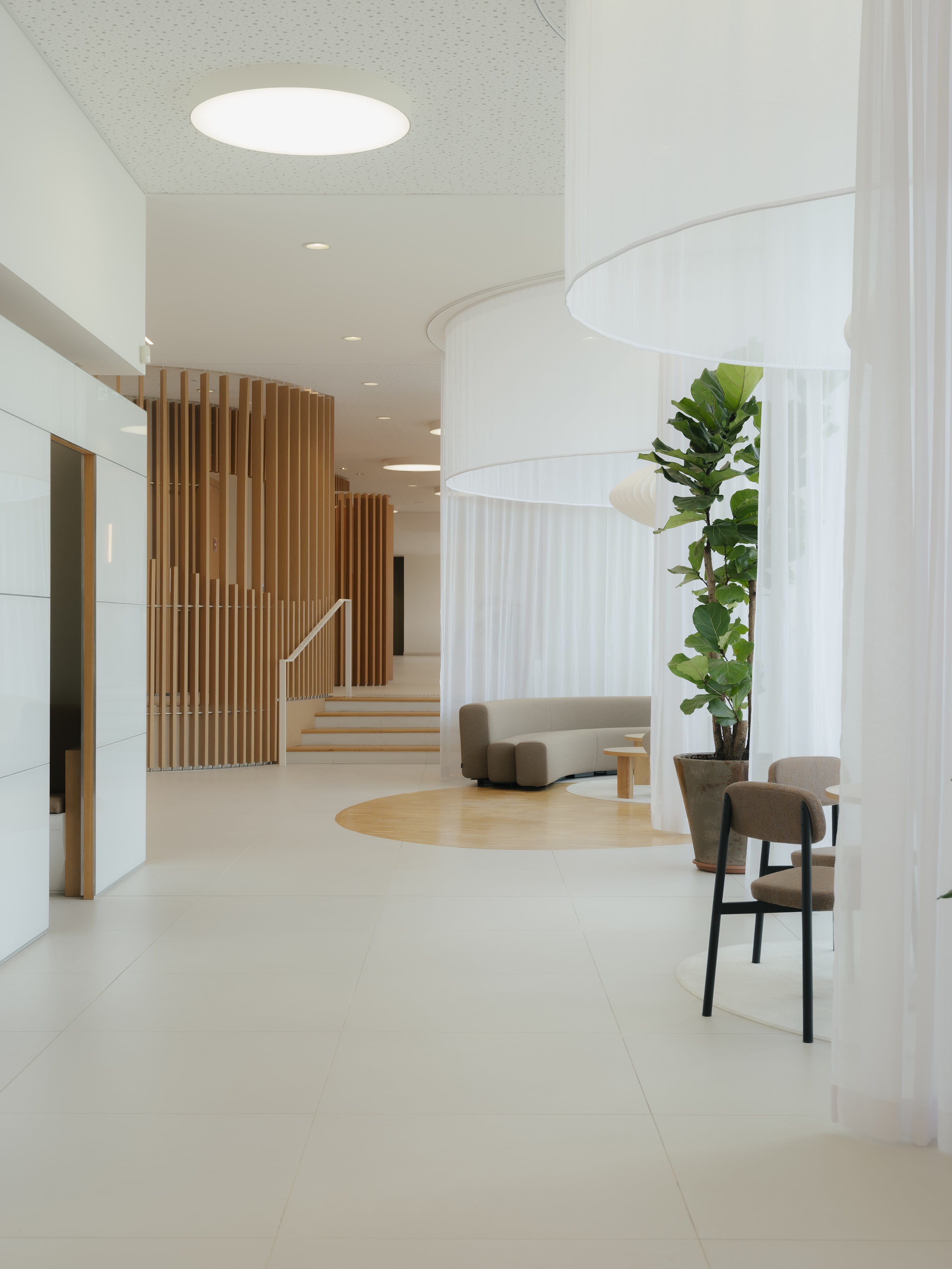 Une attention particulière a été portée à la conception des espaces d’accueil et des pôles d’échanges, pensés comme des lieux ergonomiques et raffinés, favorisant la fluidité des interactions et le confort de tous les usagers.